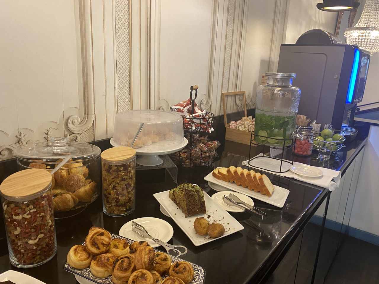 アストテル系の34Bに宿泊→マルトオペラで無料カフェ利用。4つ星だけあって、無料カフェも充実していました。パリ全般ですがお菓子のクオリティが高し...。フロントスタッフの方の対応もとても良く、立地も超中心地。値段さえ安く出ていたら今後ここに泊まりたい。。