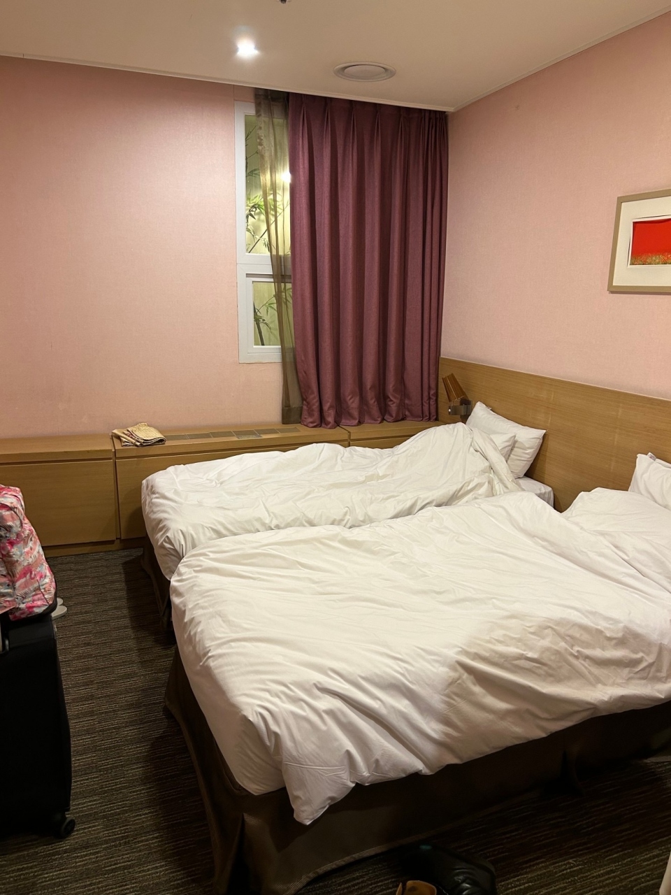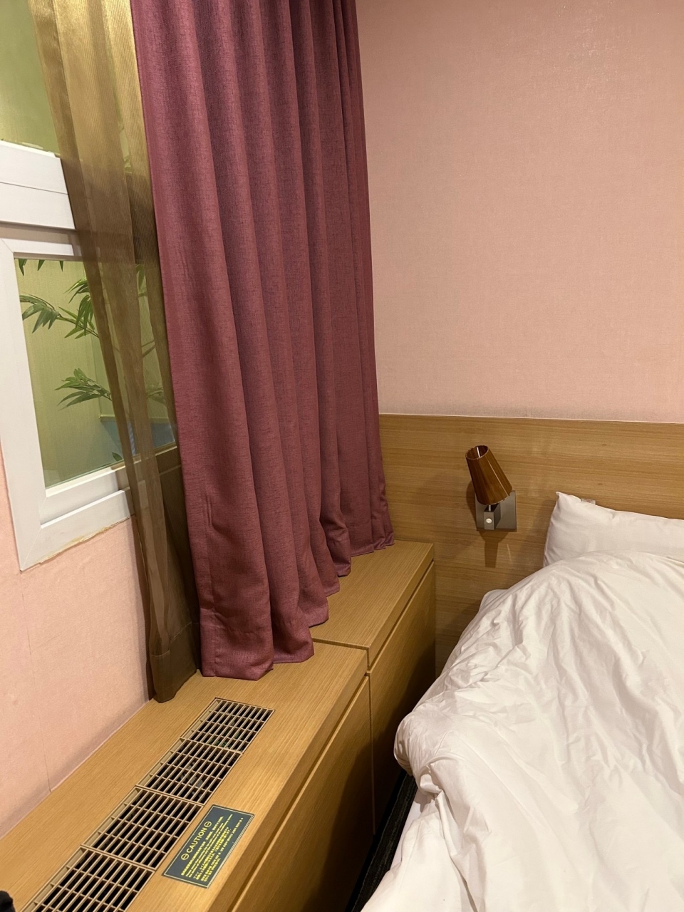 スタンダードツインに宿泊しました。ホテルズドットコムからの予約です。特に記載がなかったので、実質、窓無しの部屋であることは部屋に入ってわかりました。とりあえず窓はあるのですが、屋外に面した窓ではなく、建物内(廊下)の窓でした。雰囲気づくりのためか、窓の外にはフェイクの植物がおいたありました。ソウルに行ったら朝から夜遅くまで出歩くため、ほぼ寝るだけなので実質窓無しはそれほど気になりませんでした。部屋でもくつろぎたい場合は、気になるかもしれません。