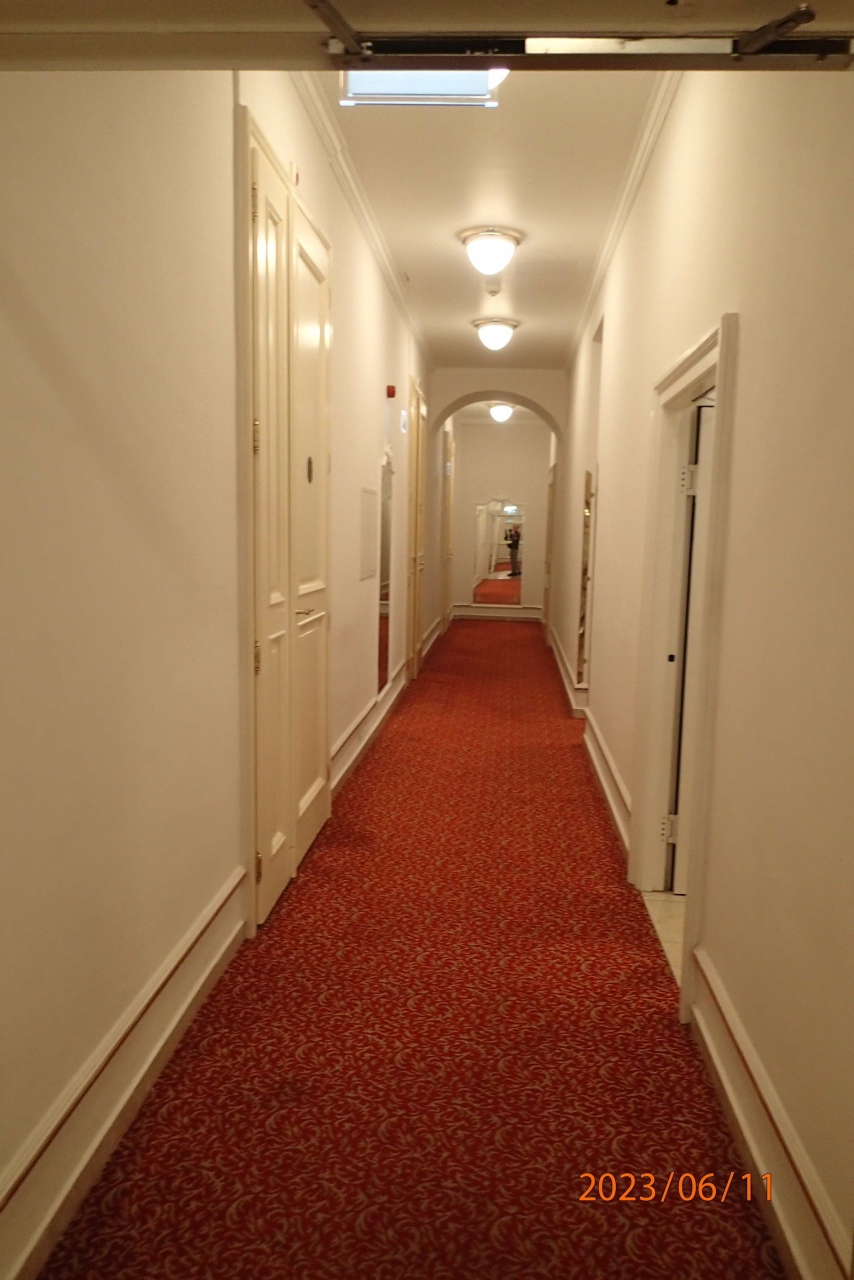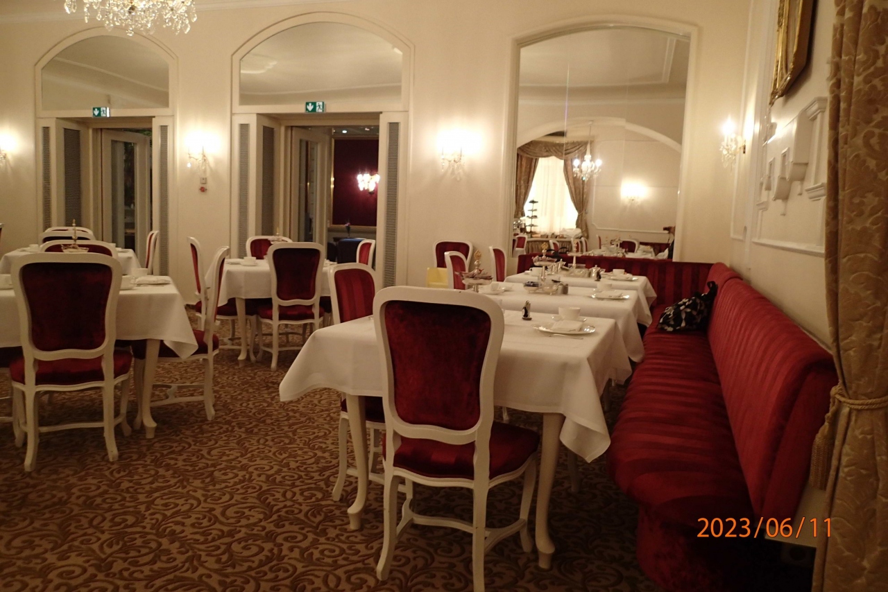 食事場所も廊下もえんじ色と白を基調とした統一感があり,エレガントな感じでした
