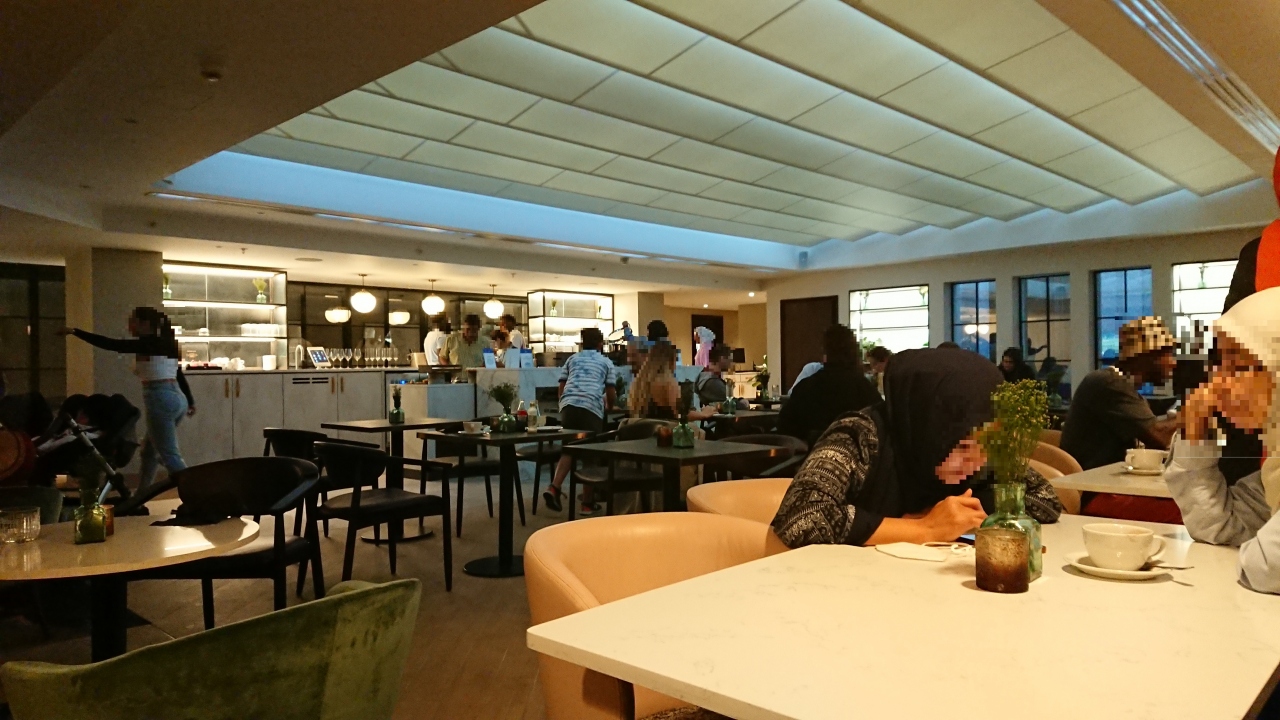 ハードドリンクが充実した広いラウンジだが、大混雑するお昼前後は相席必至。