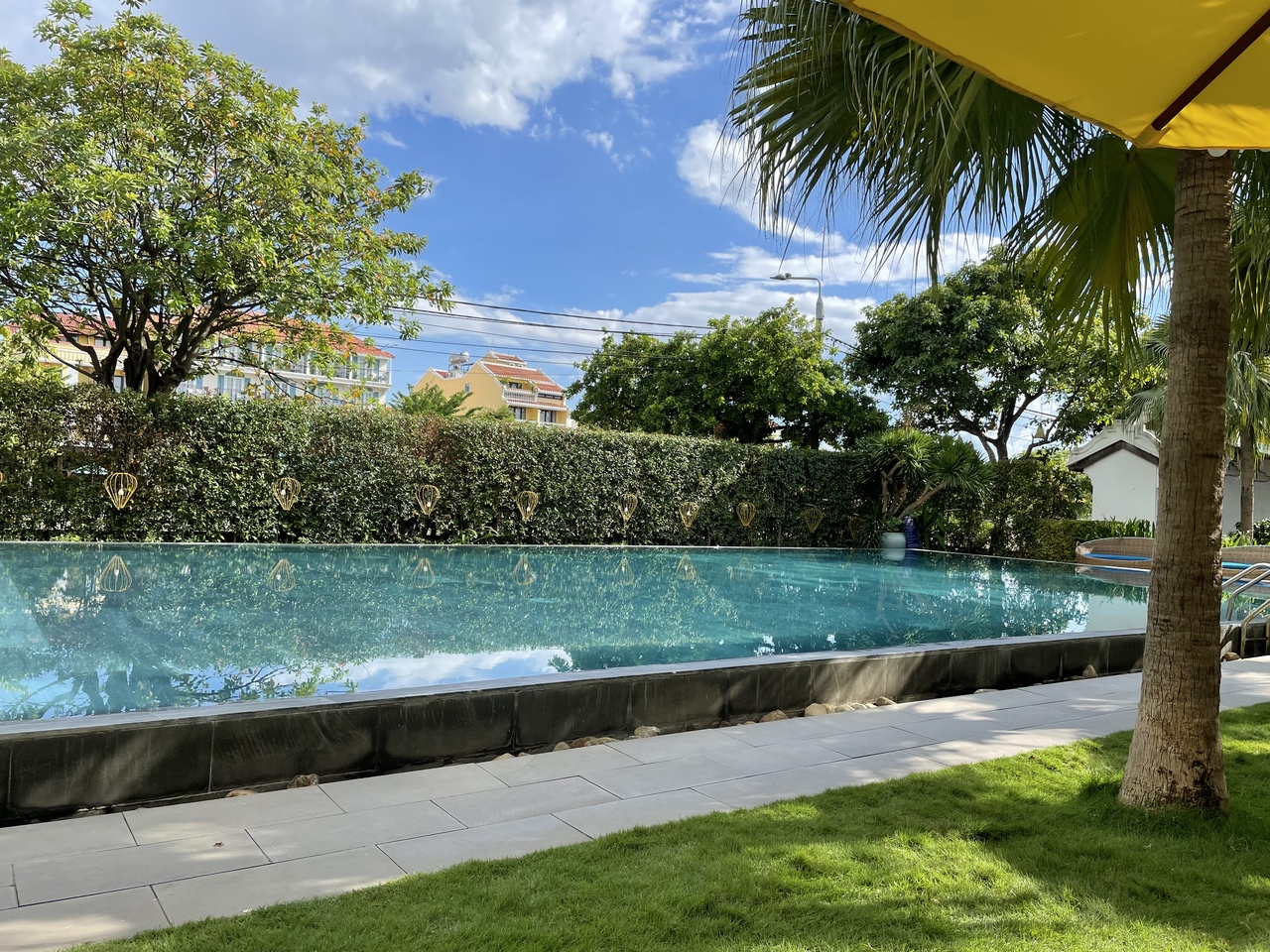 日本で予約したタクシーにダナン空港からこのホテルまで乗りました。疲れてうとうとして、タクシーの中になんとスマホを忘れてしまいました。チェックインの際に気づき大慌てしました。ロビーで相談したところあちこち、本当にたくさんのところに電話してくれたり心配してくれました。自分の携帯にも何度も電話してくれました。(国際電話扱いになり高額だったかも)結局運転手が見つけホテルまで届けてくれました。3時間はかかったと思います。国際電話料金は別途お支払いすると言っても、受け取ってくれませんでした。とても親切な素敵な笑顔のスタッフ方でした。