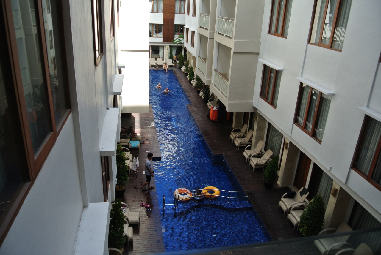 入口や外観はさほどでもないが、チェックインの際にウエルカムドリンクが出てきた。中庭に何時でも入れるプールがあってとても気分が良い。朝食もテラスでオシャレに楽しめる、まさに南国での休日という感じでのんびり過ごす事ができた。