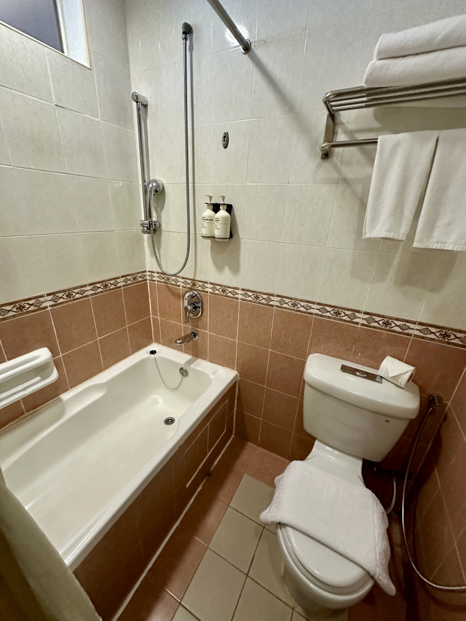 部屋も広くて非常に綺麗…ところが、バスルームは暗く、古く…ああ、この部屋、いやこのホテルは、古いものをリノベーションしたんだなぁぁ…という事がわかる。
