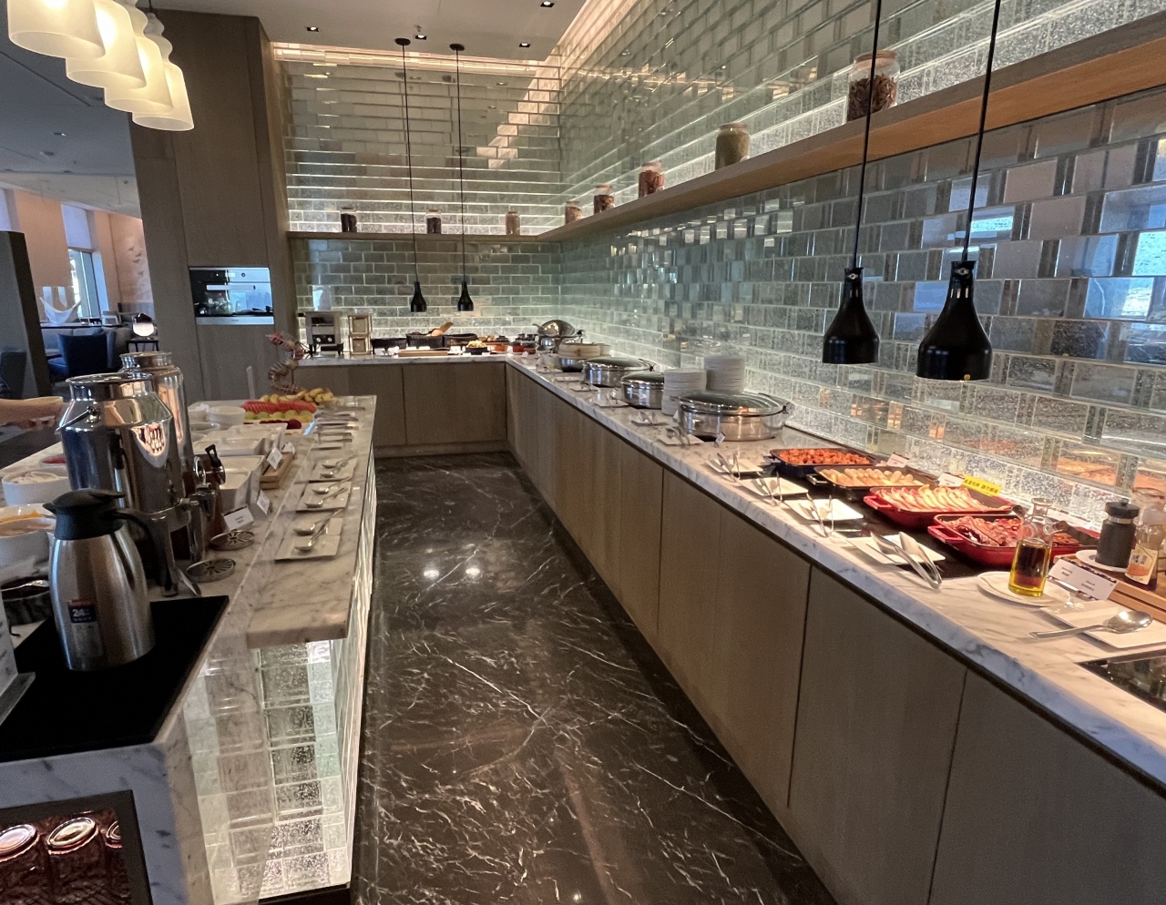 エグゼクティブラウンジでは、しっかりした食事が提供されます。朝食では、ビュッフェ台の料理のほか、オーダー料理もあり、カレーをいただけました。