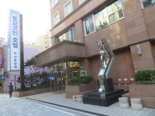 釜山地下鉄1号線の中央駅と釜山駅のほぼ中央、中央大路沿いにあります、周辺にコンビニ、飲食店が多くあり便利です、釜山に来た時は利用することが多いです、最近釜山の宿も高くなったのに5000円位で泊まれるのが有難いです、今まで、5回程利用しました、客室は普通のビジネスホテルで狭くはないです、簡単な料理ですが朝食が無料で利用できます、フロントは日本語が可能で日本の東横インと同じようです。