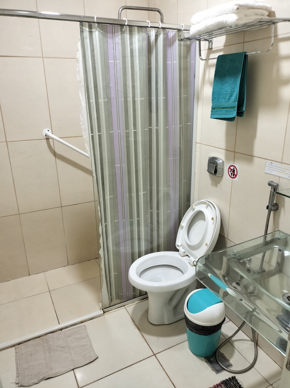 ひと昔前のあっさりした内装です。シンプルとも言えます。イグアスの滝に行くバス停がすぐ近くにあり、便利です。コンビニも15mぐらいの所にあります。チェックインの際、観光税を支払うよう求められ、領収書を渡されます。冷蔵庫、アメニティはありません。