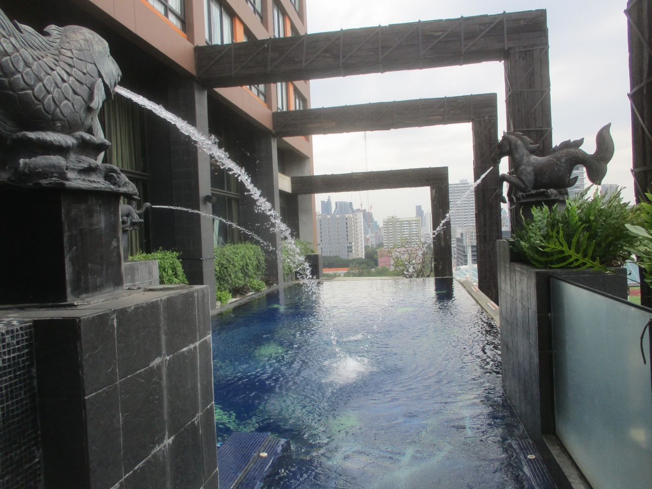 サイアム アット サイアム デザイン ホテル バンコクのプールやフィットネスジムといった施設は11階にあります。プールのすぐ脇ではないですが、ビーチベッドはありました。早くに行って、ファランとプールサイドのチェアを取り合ってました。
