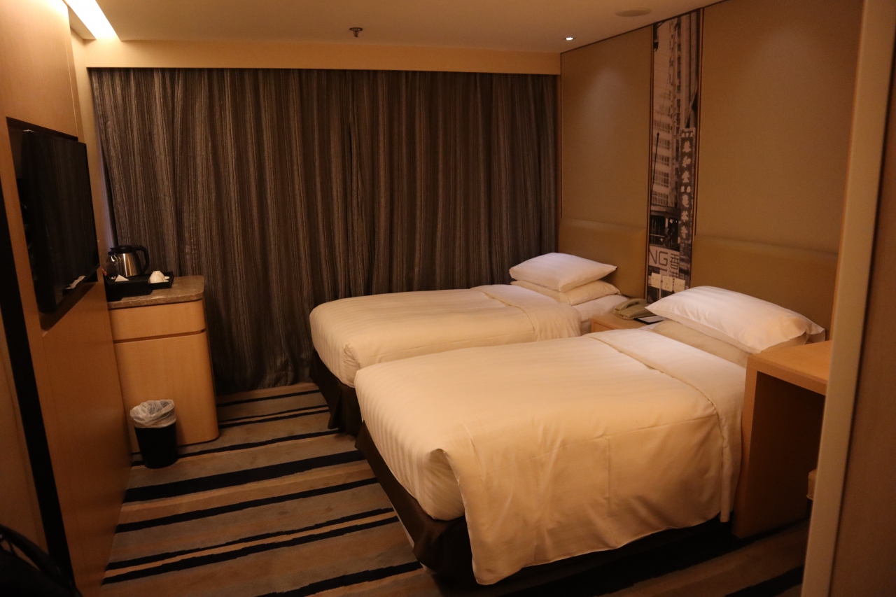 部屋は、22㎡で香港のこのレベルのホテルでは広めでしっかり掃除されていますが、ホテル自体は年季が入ったビジネスホテルという感じです。