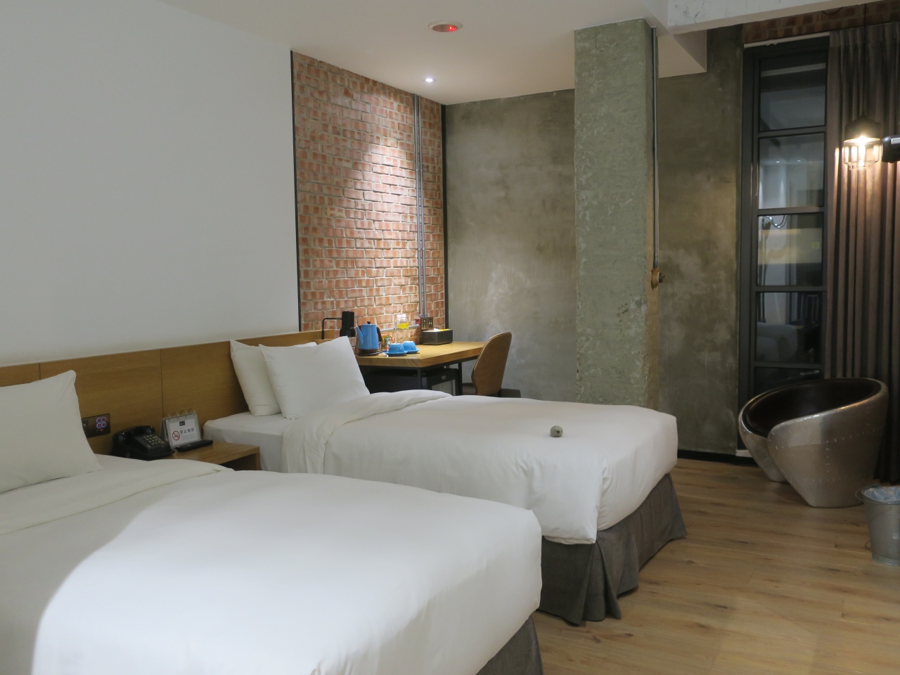 台中駅から歩いて10分ほどのカジュアルホテル。古い建物をリノベしたホテルのようだが、客室はコンクリートの打ち放しなどの使い方もうまくなかなかおしゃれ。決して広い部屋ではないが清潔感がある。ただしトイレは部屋による可能性もあるが紙が流せないタイプなので注意。もっともウオッシュレットが標準装備なので大きな問題はなさそう。バスタブはないがハンドシャワーもあり使い勝手はよい。水の出にも問題なし。
