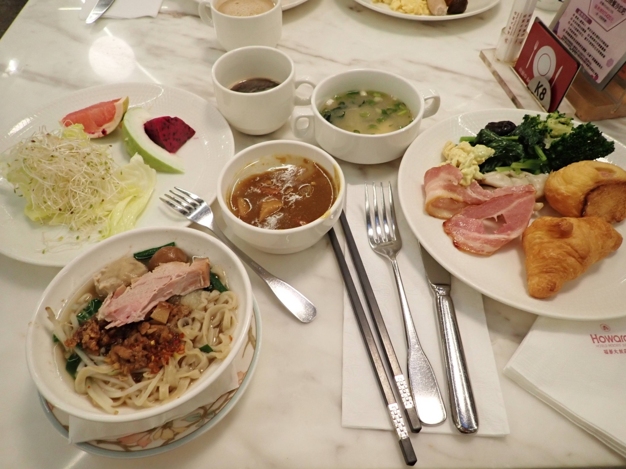 高雄市中心部にあるまあまあ高級な感じのホテル。ツアー利用で正確な費用分からず。朝食バイキングはメニュー豊富で美味しかったです。麺をゆでてくれるサービスあり。バスルームはシャワーとバスタブが別々になっていました。大きなプールがありましたが、結局利用せず。