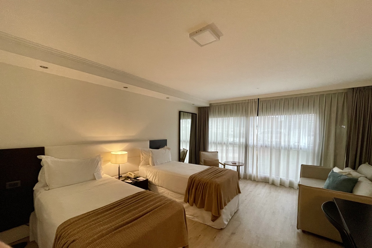 ラプラタ川沿いのブセオというエリアにあり、気軽にリバーサイドの散策が楽しめます。外観もインテリアもいいデザインで客室も広くバスルームもきれいでよかったですが、ツインの部屋の一つ一つのベッドがとても小さくて残念でした。朝食はふつうにおいしかったです。クリスマスに宿泊したので、ツリー型のクッキーやミネラルウォーターのサービスがありました。