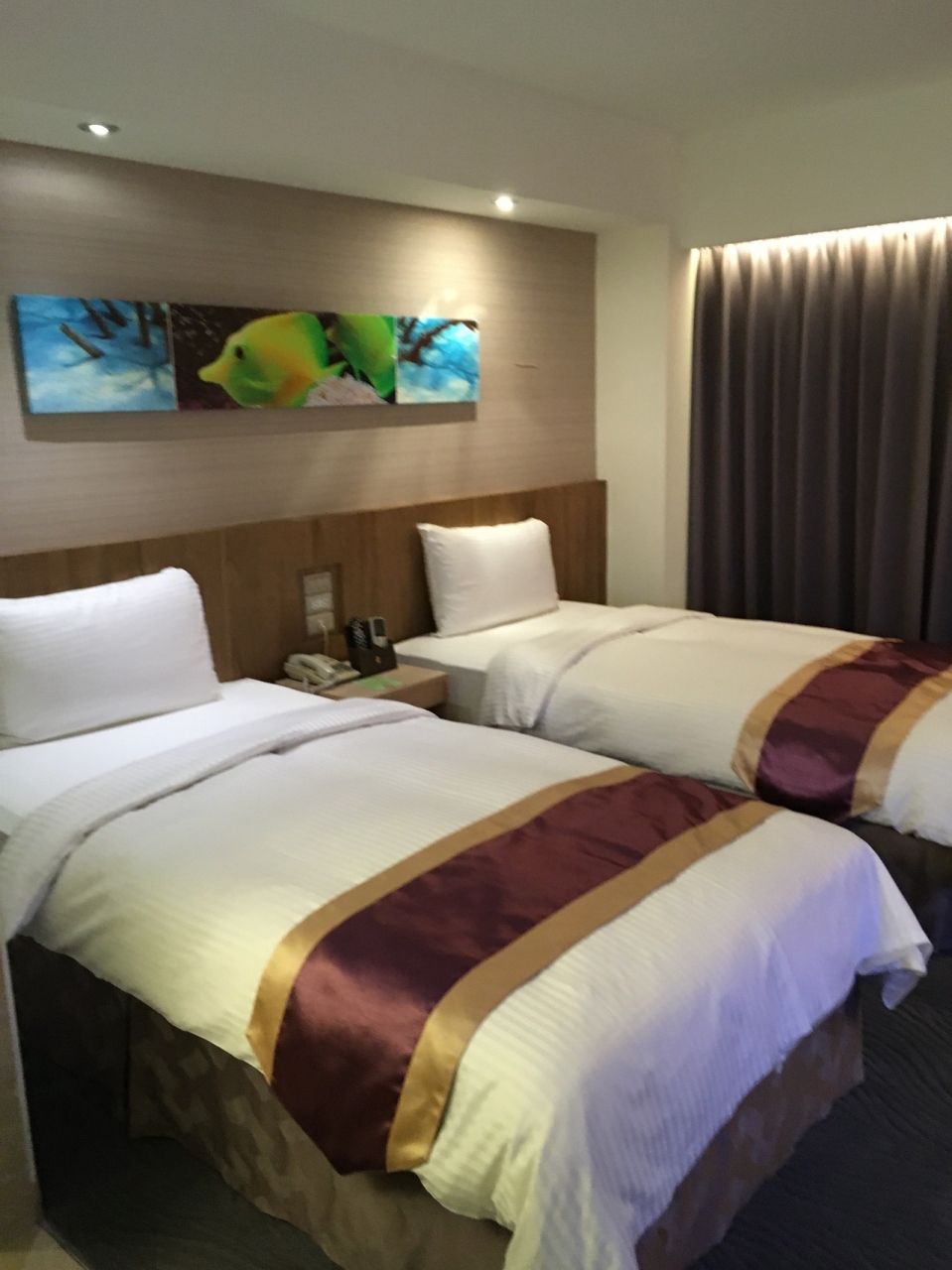 なんとなく物足りなく、感じるところがありました。朝食ビュッフェには、ホテル自家製のヨーグルトがあって人気でした。部屋には冷蔵庫、電気ポット、ヘアドライヤーが完備されていました。全体のインテリアが重厚感のあるワインレッドでした。