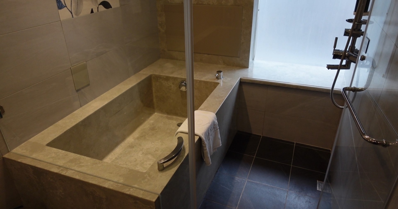 トイレはウォシュレト付き、バスルームは人造石作りで広々していて、シャワーの水圧も充分にあり問題ありませんでした。