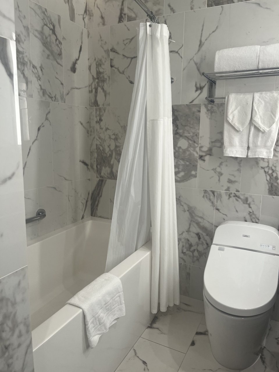 ハワイでも増えてるとはいえ、まだまだ少ないトイレのウォシュレットがついており、バスタブも広いので日本のお風呂のように深く沈みすぎなくても肩までゆっくり入ることができます。