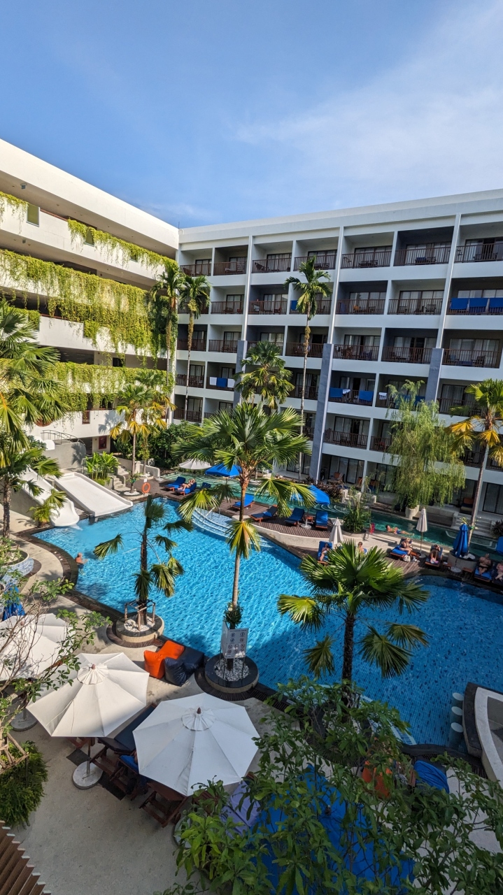 パトンビーチの南よりで、中心部から徒歩15,20分ほど離れていて比較的静か。レセプションは半屋外にあってリゾートな雰囲気。広い部屋でキレイ、古くささもないし、リーズナブル。近くにレストランの情報がなかったのですが、徒歩5分で小さい屋台エリアがあって新鮮な魚介を生簀から取って好きな料理を作ってくれる。朝食ブッフェも美味しかった!
