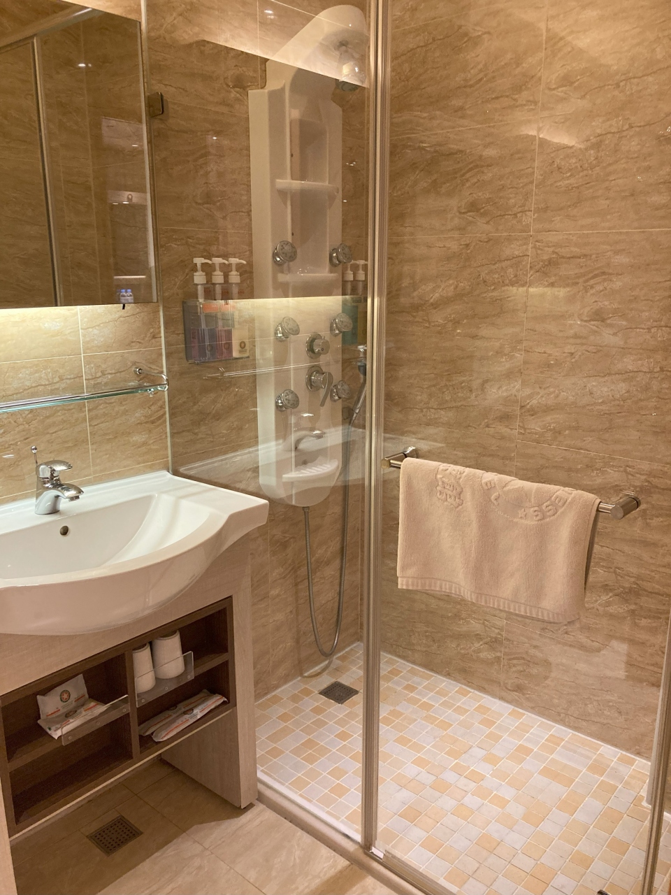 部屋は広くはないですが、清潔で快適でした。浴室も、狭さは感じず、複数のシャワーヘッドと男女別タイプが選べる液体ソープやシャンプーがあって、これも快適でした。