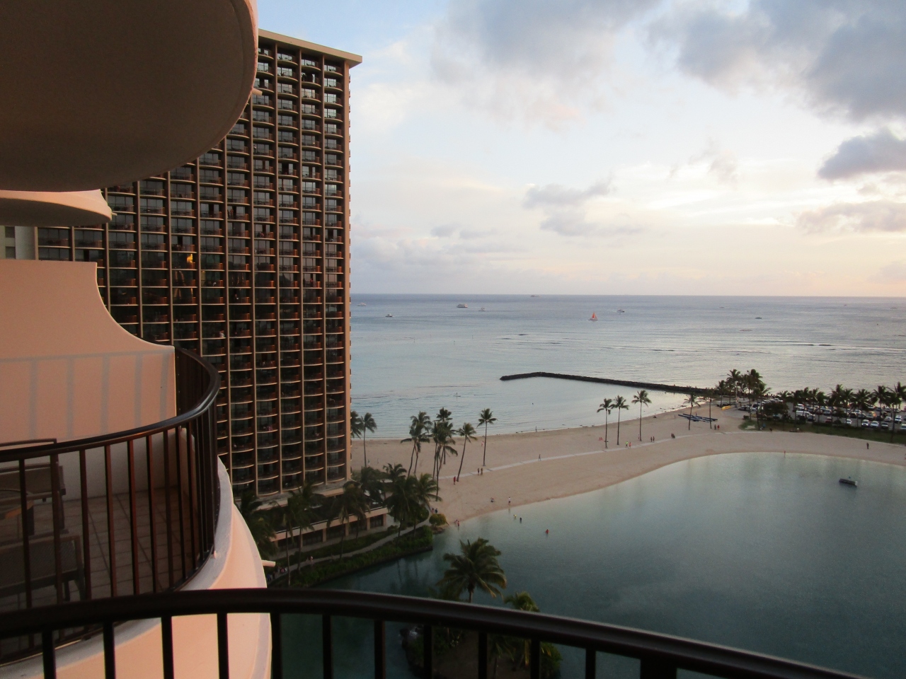 ラグーンタワーの16階のオーシャンフロントの部屋で、ヒルトンラグーンが眼下に眺められ、金曜日の花火も迫力満点で最高のロケーションでした。