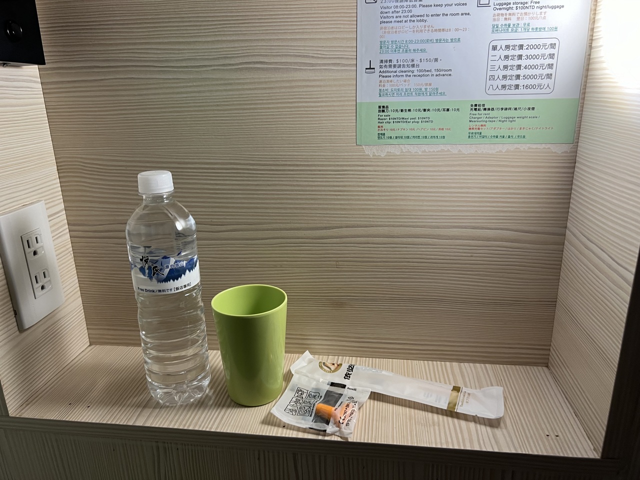 ドミトリーに当日予約して2500円くらいで宿泊できました。台中駅から徒歩5分と近く、フロントも24時間対応しているので夜中のチェックインもOK。