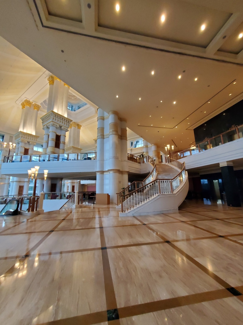 ブルネイにある高級ホテル、世界に2つしかない七つ星ホテルだそう。ブルネイの市街地から大分はなれているので食事は基本ホテルエリア出とることになるだろう。高級ではあるが現実離れした値段でもないので少し奮発して泊まるのは良いのかなと思う。