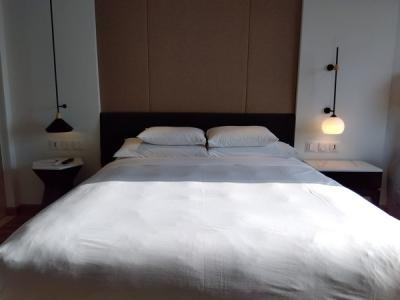 ハイアットらしく、ビシッとしたベッドメイク。お部屋の間取りもよかったです。お湯の出が悪かったのがマイナス点。