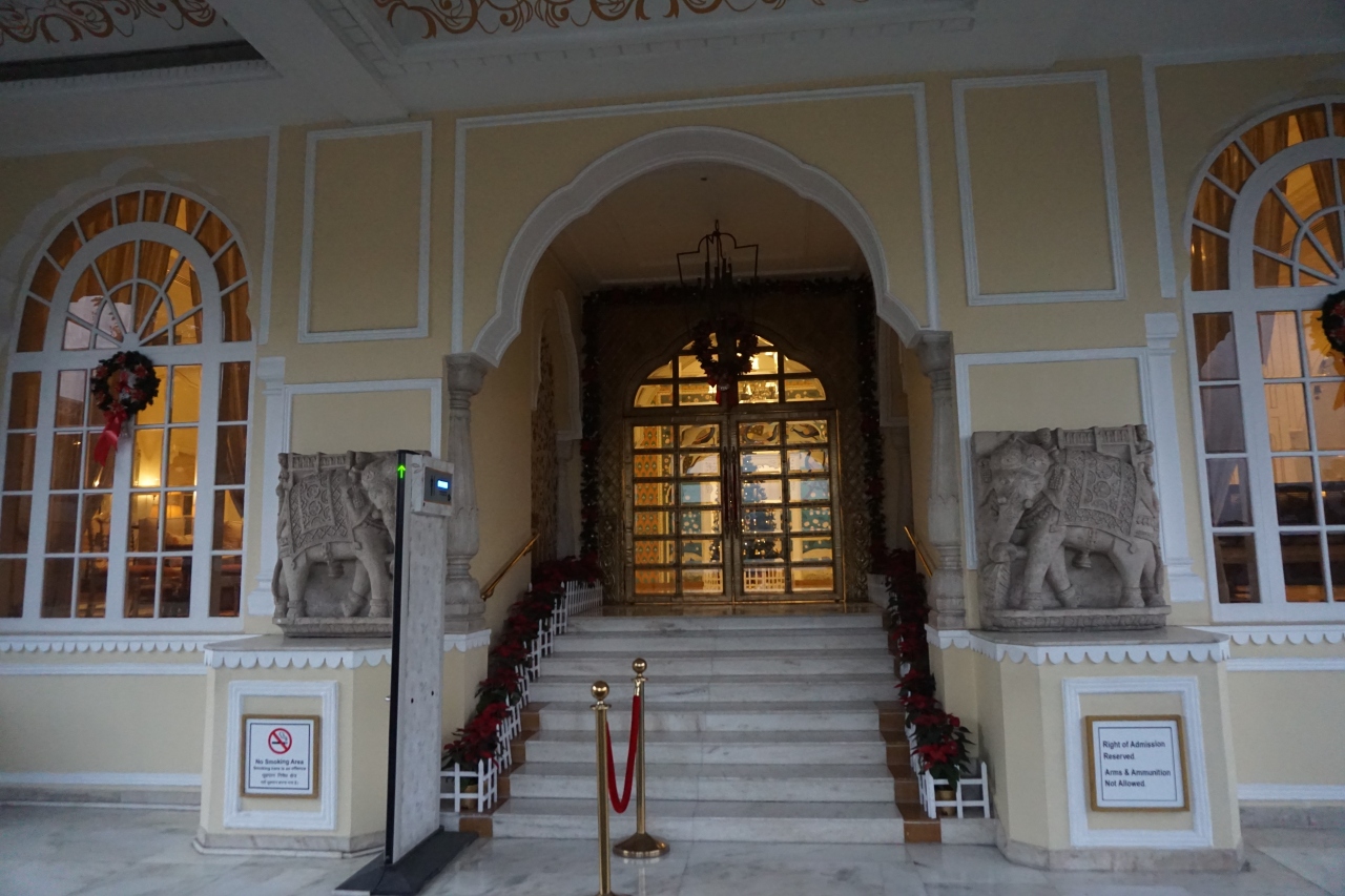 お正月、ツアーで利用しました。インドの名門ホテルチェーン・タージグループ経営のパレスホテル。広い敷地でお部屋も豪華でした。ホテルのレストランにて食事(ビュッフェ)をしましたが、雰囲気よくたくさんの種類のカレーにフルーツもあえいましたが、果物類、正直イチゴもキウィも酸っぱくて固い日本のものとは全然違います。