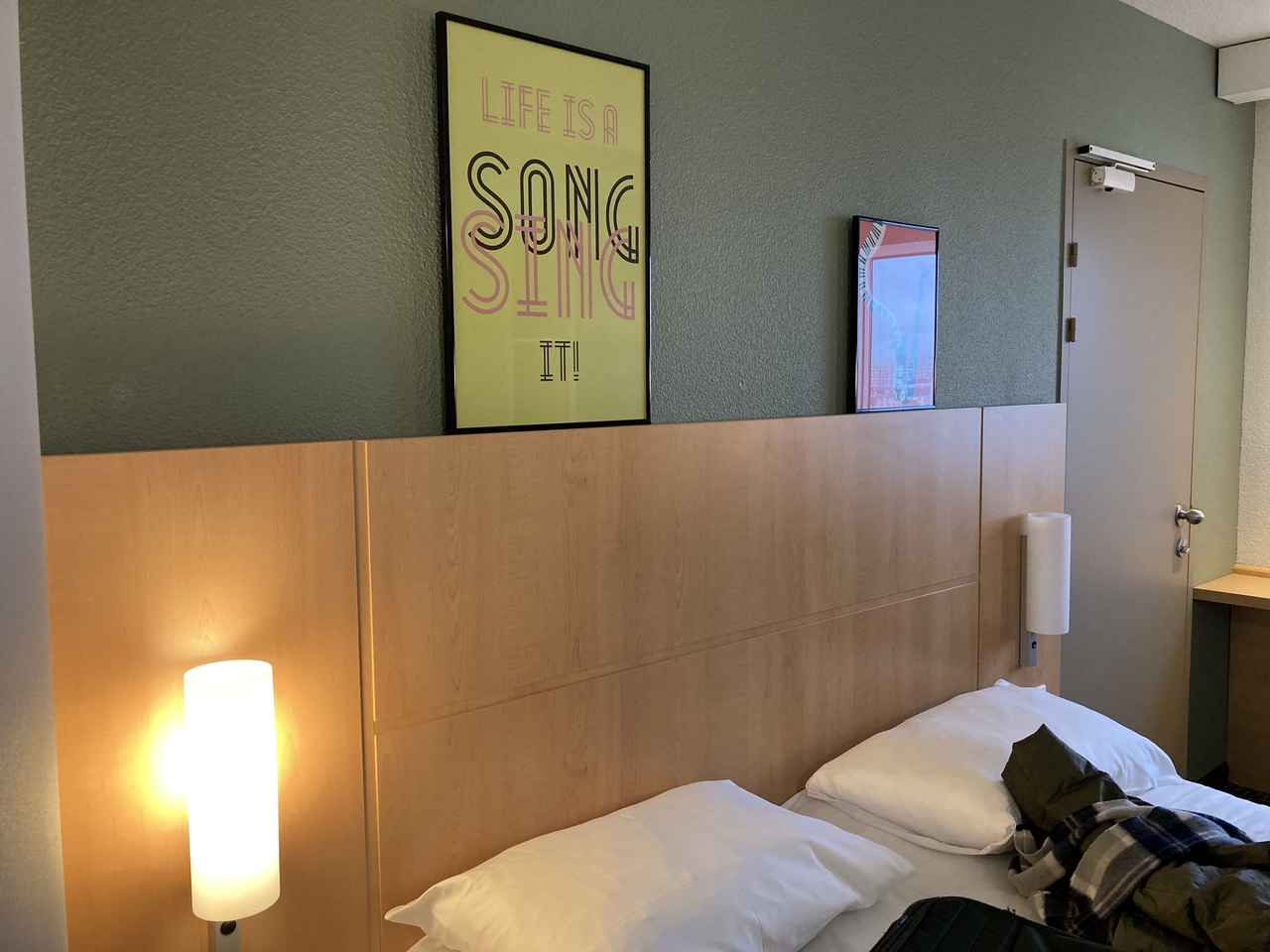 ホテルはイビスによくあるポップな内装で、若めのイメージ。部屋も機能的にできていました。シャンプーなどのアメニティも一通り備えつけてありました。