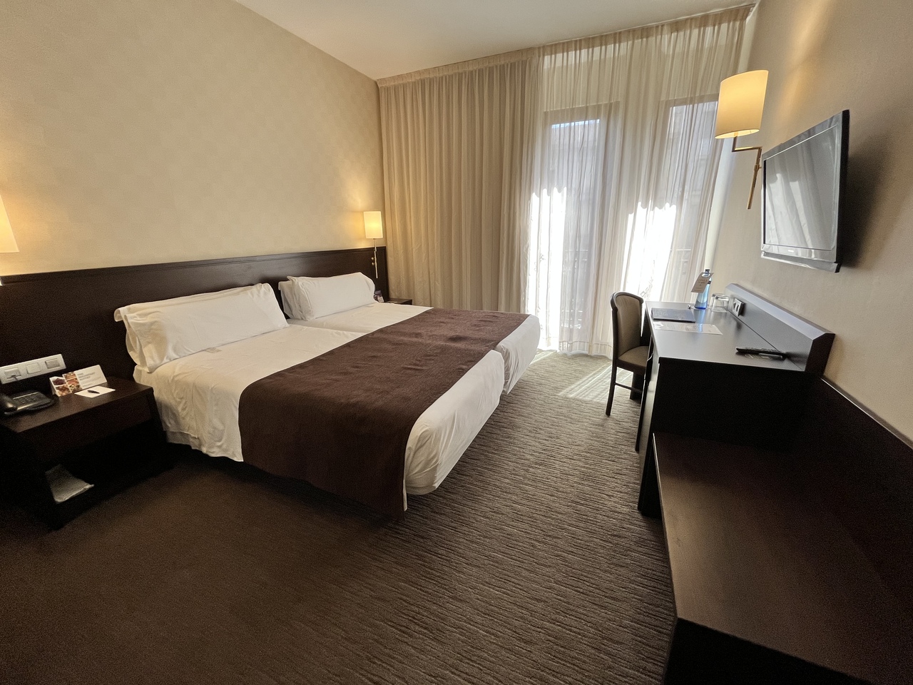こじんまりとしていてとても綺麗です。屋上にプールとバーがあり、22:00までお酒を飲みながらバルセロナの景色を楽しむことができます。朝食は日替わりでに内容が少しずつ変わったりしていて、3泊しましたが毎日楽しめました。冷蔵庫も付いているので、部屋でも軽食を食べることができます。とっても便利なホテルです。