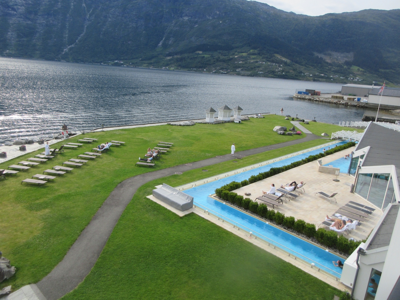 ベランダからハダンゲルフィヨルドの絶景を見ることが出来る。朝夕食はバイキングでサーモンが美味しい。デザートの種類も多く、ベリー等の果物が美味。フロムから2時間かかるが、ロフトフースにあるこの絶景ホテルまで来る価値があることは理解できる。ロングのプールがあるがフィヨルドでも泳いでいる人を見かけた。