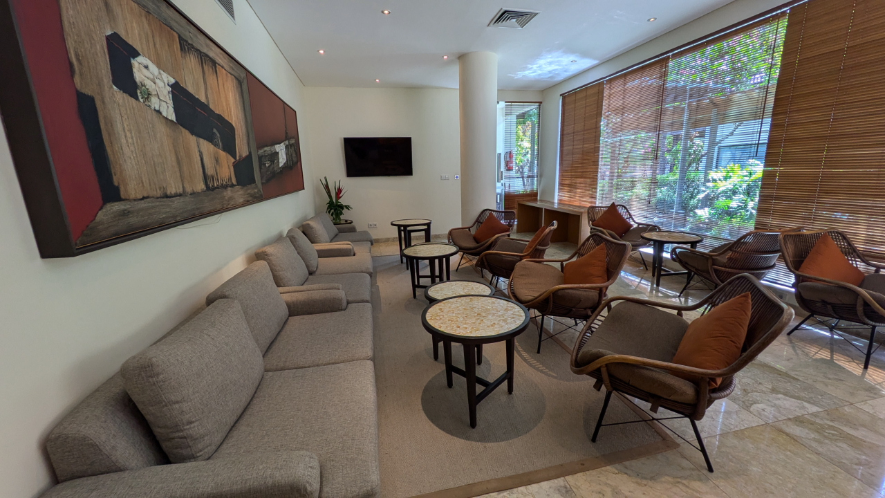 チェックアウト後でも使えるデパーチャーラウンジがあり、コーヒー、紅茶にクッキーなど用意されていた。シャワーも使えるのでレイトチェックアウトの必要性がない。