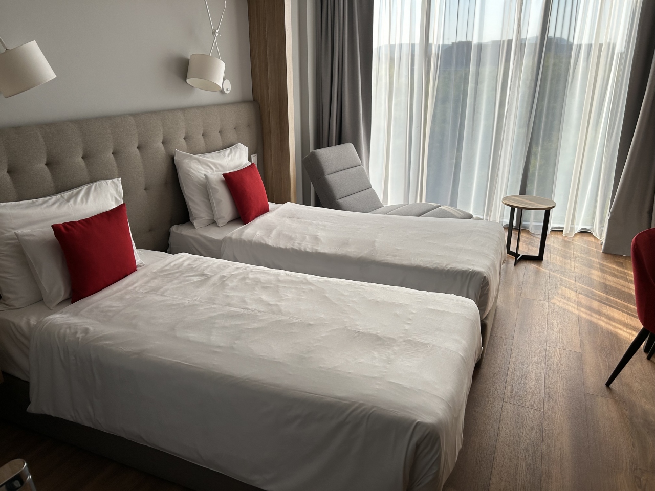 ハンガリーはインターコンチと決めてましたが、今回はツアーなので、初めて泊まりました。新しいホテルでモダンです。作りが内装含めて、おしゃれ。若いスタッフは英語が達者で安心です。近くにコンビニ、スーパがあるので買い出しには困りません。また、すぐ横の公園で朝市をやってるので、新鮮な果物とかを買いたければ、楽しみです。ただし、ハンガリー語しか通じないと思いますが。。
