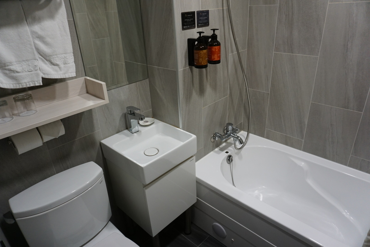 バスタブは自分が使う分には問題ない広さ。170cmぐらいの人は狭く感じるかも。