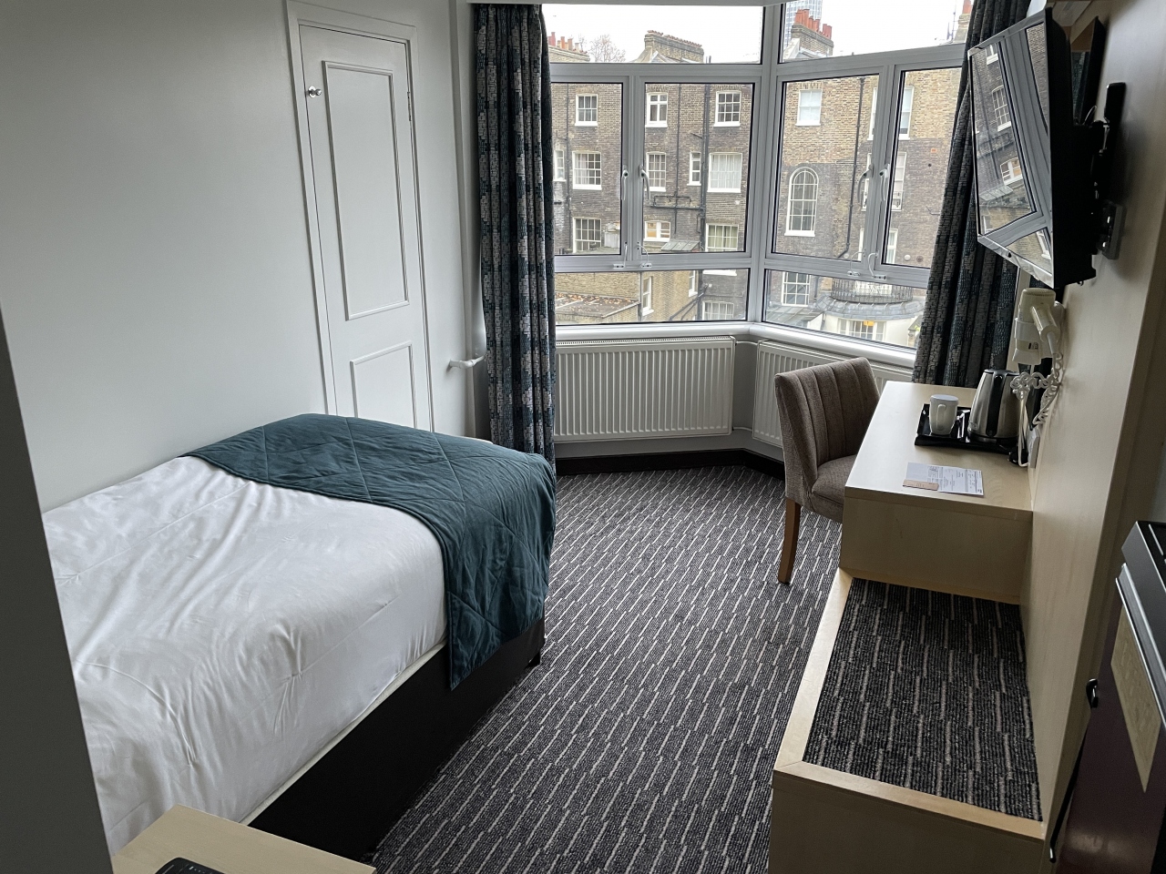 ロンドン中心地にある日本のビジネスホテルのようなホテル。シングルベッドに狭いシャワールーム、スーツケースをギリギリ広げることができるスペースがあれば十分という方向け。大英博物館の近くにあるので、部屋を気にしなければ、どこへ行くにもアクセスは良く便利ではある。ヒースロー空港からだとエリザベスラインで最寄駅の隣の駅までは行くことができるのだが、最寄駅ではないので、少し歩かなければいけない。そこは若干不便。