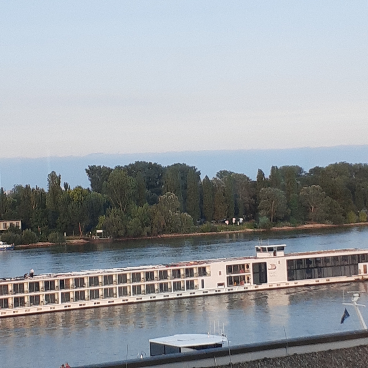 フランクフルト空港に夕刻到着後、直行でマインツ中央駅に明るいうちに着きました。駅からは多少距離が有りますが、ライン川の方向に向かって行けば良いのでスーツケースを引いての移動もスムーズでした。朝食も十分楽しめました。直ぐ裏にKDラインの切符売り場と乗り場が在るので極めて便利です。