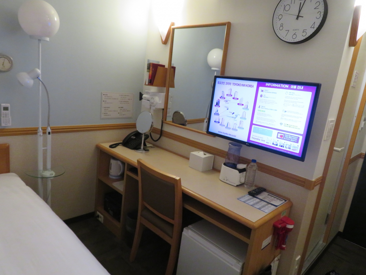 ソウルにあってもそこは東横イン、部屋に入るとなんだか日本にいるような感覚でした。コンセントも日本もAタイプがそのまま使えたのは便利だったかな。立地もよくて駅からすぐだし東大門で夜遅くまで買い物していても歩いて帰れる安心感がよかったです。フロントでは日本語も通じるので初めてのソウル旅行などても使いやすいかも。