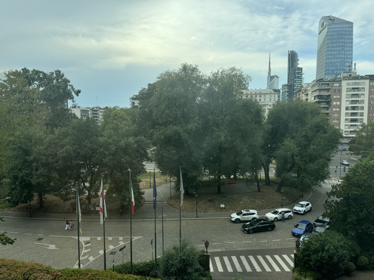 ミラノ中央駅から、駅前の大通りをまっすぐ1キロ。駅に近い場所にありながら、ホテルの目の前には、緑がいっぱいのレプブリカ広場があり、ホテル周辺は静かで落ち着いた環境です。