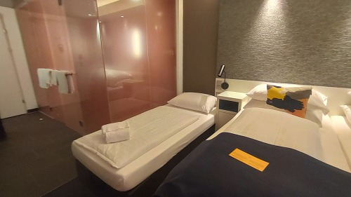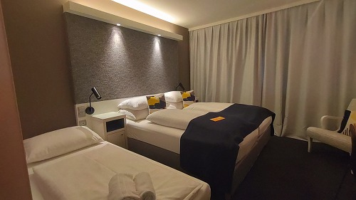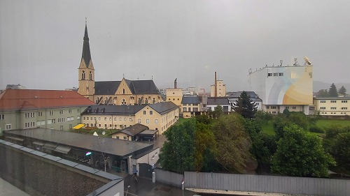 フィラッハ駅から5分ほど、ドラバ川沿いに立つきれいなホテル。部屋は広く設備は近代的で快適。南側の部屋であれば川の景観の眺望が得られる。泊まったのは北側の部屋でしたが、駅前の古い住宅街が眺められて味わい深い。旧市街にも近く観光拠点としても好都合と思います。