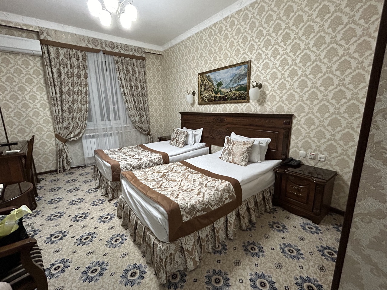 観光するラビハウズとカラーンモスクの中間位にあるので立地はとても良かったです。建物がかなり古そうでした。2泊しましたが1泊目の夜、5分位停電がありエレベーターを使うのがちょっと怖かったです。部屋は広めでバスタブもありました。暖房があまり効かなくて寒く、バスタブがあって助かりました。ホテルのレセプションは昼間は電気をつけてなくて薄暗かったです。