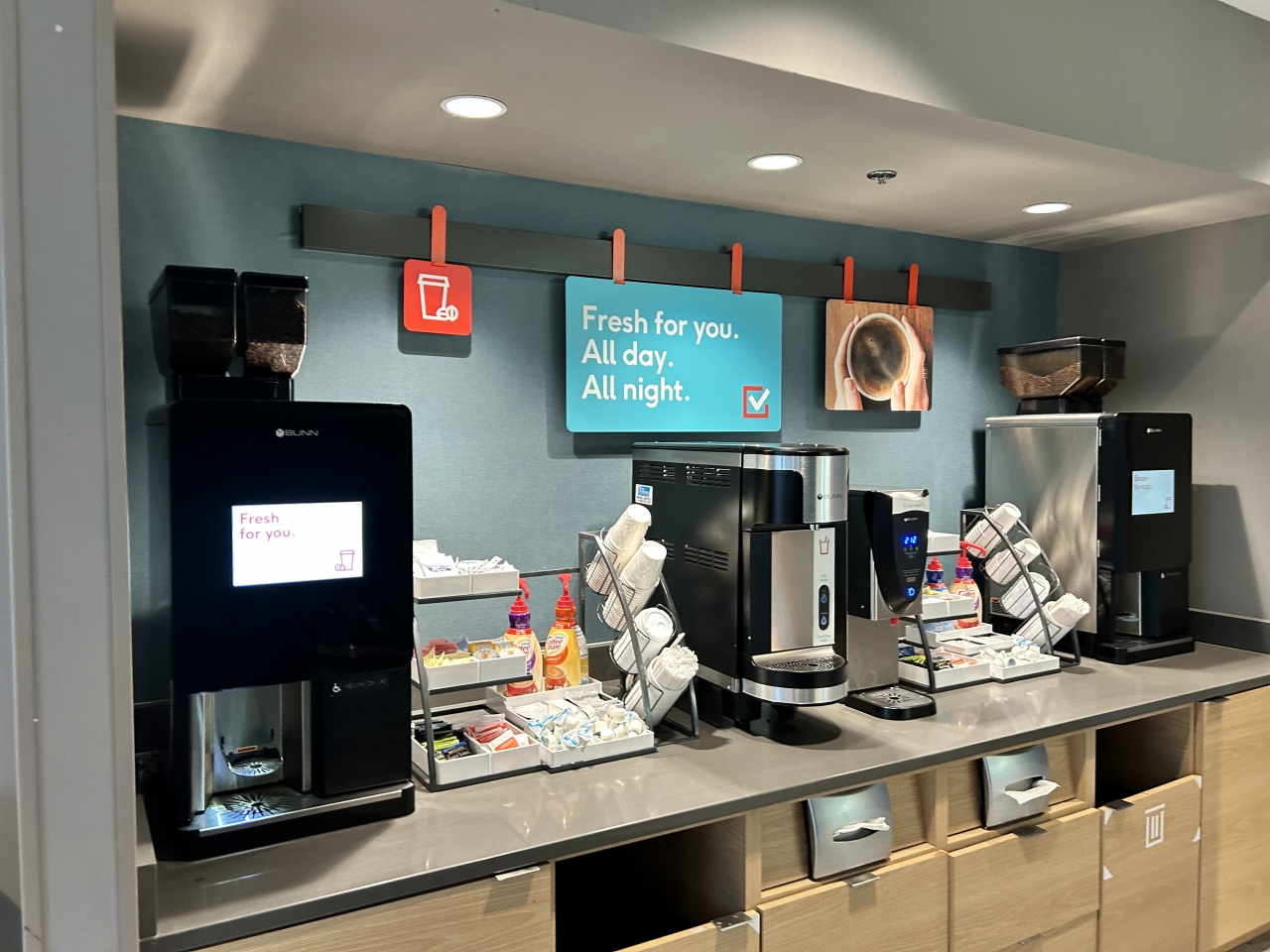 メイコンの郊外、州間高速道路I-75沿いにあるホテルです。私たちが定宿にしているIHG系列ホテルの中でも、料金が安めのスタイリッシュなカジュアル・ホテルで、新しめな建物が多く快適です。朝食は簡単なものですが、ホットミールやワッフルなどもあり充分、フィットネス・ジムまでついてコスパの良いホテルでした。