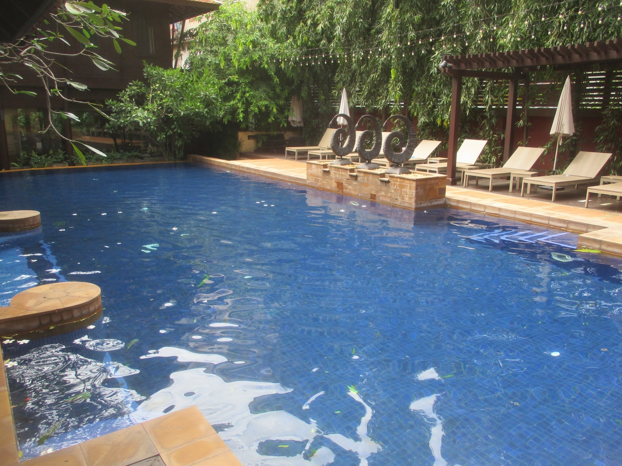 ザ ローズ レジデンス1階のプールはリゾート感溢れる雰囲気があります。バンコクではなかなかこういったプールを所有しているホテルは少ないです。日中になると混雑するが朝の時間帯は空いておりくつろげます。7時過ぎに利用すると、すでにバカンスを楽しむファランがいました。