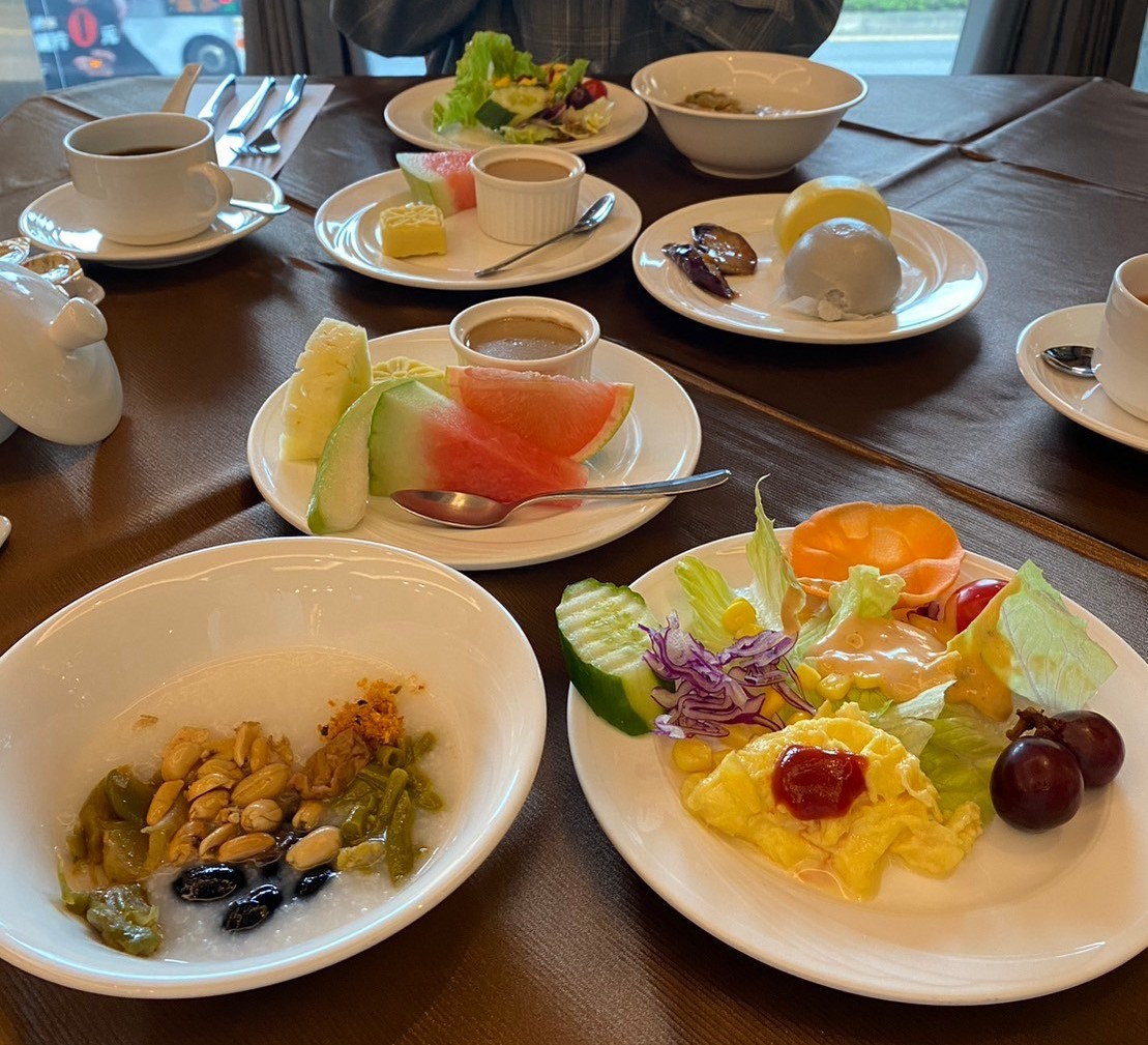 朝食はローカル料理、和食、洋食、デザート、フルーツなど色々揃っていて楽しめます。