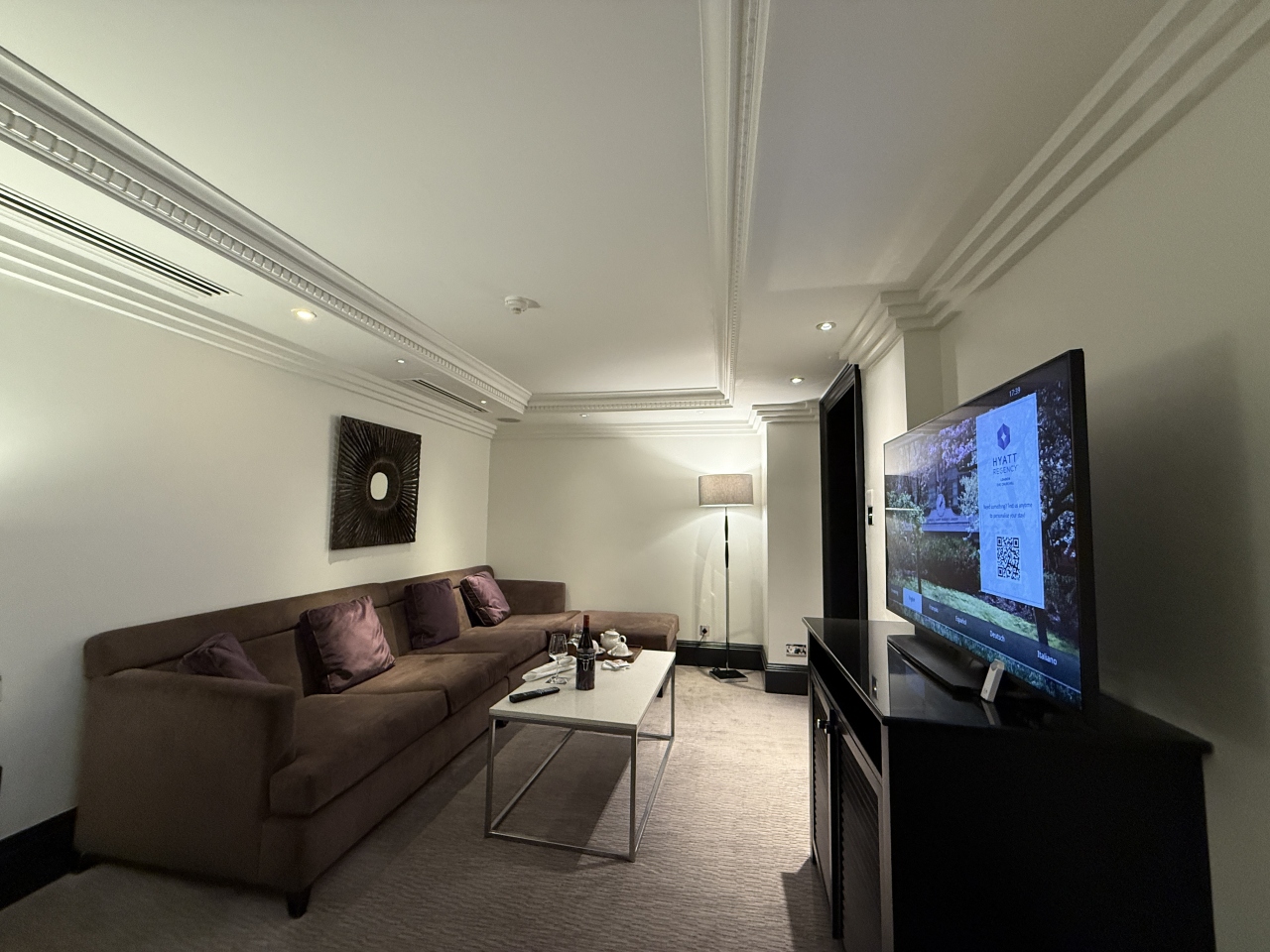 ロンドンの中心部にあって場所がとにかく便利です。地下鉄駅までも複数駅歩けます。ホテルのチェックイン、ドアマンの対応なども含め、パークハイアットロンドンよりも個人的には気に入りました。ラウンジの作りも従業員も感じがよく、飲み物の種類もそこそこありますし、食物もサラダなどもおいしい。それほど食べない日であればここだけで充分です。アメニティはモルトンブラウン、スイートに関してはミニバーは無料。テレビはサムスン、机周りにも文具がありました。机も使いやすいですし、Wi-Fiも認証なしで速度もそこそこいい感じ。とても便利にパソコン作業ができました。