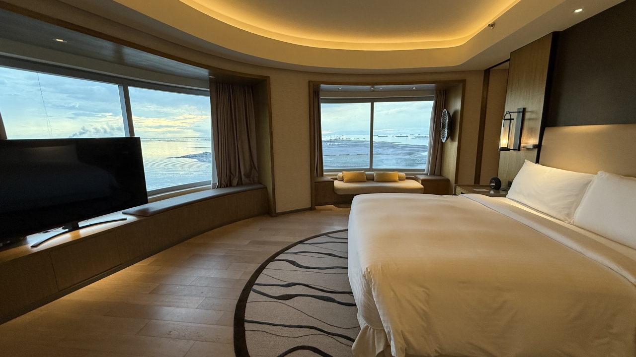 ソウルのコンラッドではいろいろ文句ばかり書きましたが、ここはいい!非常によいです。新しいのでまず客室からしていい。コンラッド名物のダックはいませんが、オリジナルの水牛のぬいぐるみはなかなか可愛いです。それと、人的サービスがとにかくよくて、フロント、ラウンジ、コンシェルジュといったあたりがまず素晴らしい対応。さらに、ドアマンやポーターさんも親切なだけでなく、適切なアドバイスもくれましたし、ショッピングモールにいくドアにいる警備員の女性も非常に感じがよくきちんとしていました。ハウスキーピングもきちんとしていて不足なものは一切ありません。ランドリーも余計な香りなどつけない質実剛健な仕上がり。空港までも近いですし、フィリピンペソが弱いので、いろいろ安く感じました。空港送迎に関してはマニラはチェックインカウンターまで来れない(アキノ空港にいる係員が担当する)のですが、荷扱なども非常によかったです。