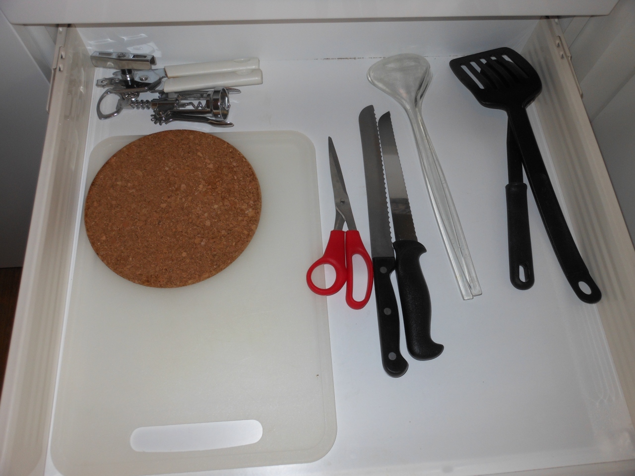 持っていったほうが良いものは、ティッシュ、時計、キッチンの水切り生ゴミ袋、お箸です。