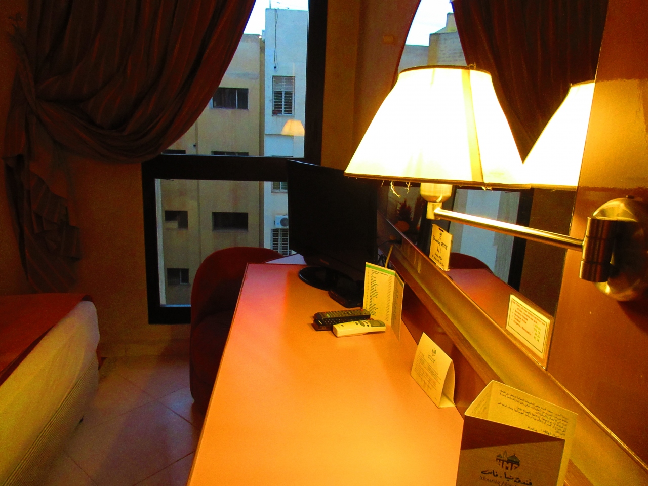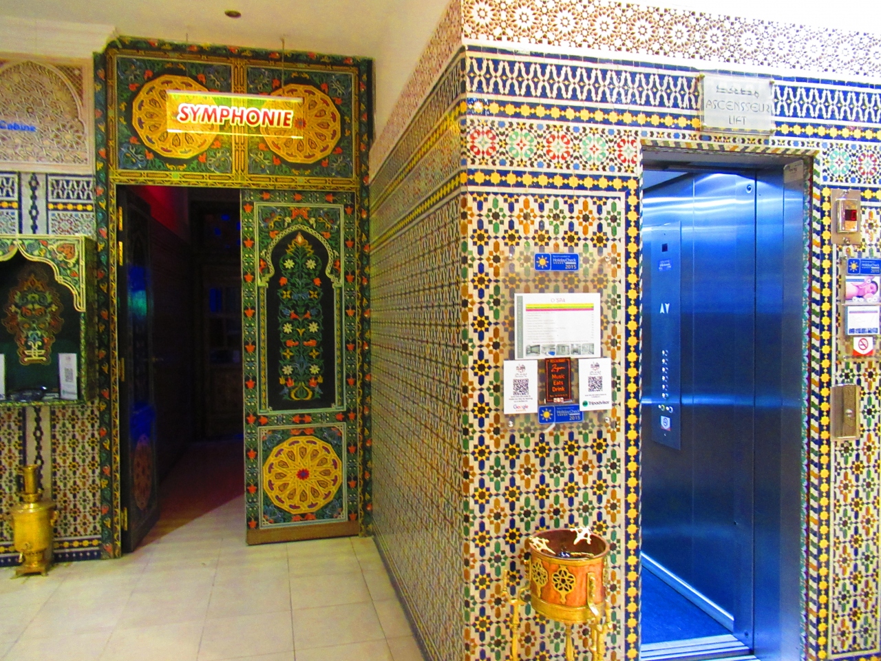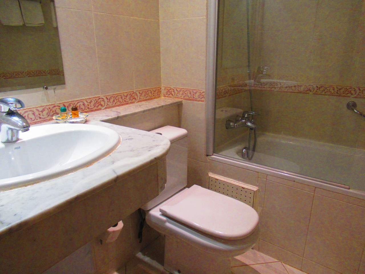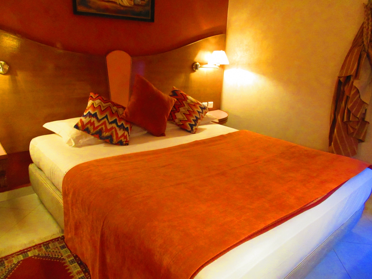 フェズの新市街にあるホテルで、内装がかわいいです。小さなエレベーターがあります。鍵はカードキーでスムーズにドアが開きました。ちゃんとエアコンが効いて、バスルームも広く、浴槽もありました。日本のホテルほど掃除は行き届いていませんが。ドライヤーもあり、モロッコのホテルにしてはよかったです。
