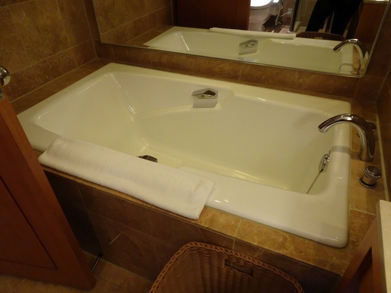 結構豪華なホテルで、デラックス(一番低い)ルームでも部屋も広くて、豪華です。シャワールームやバスタブ、広い洗面もあります。