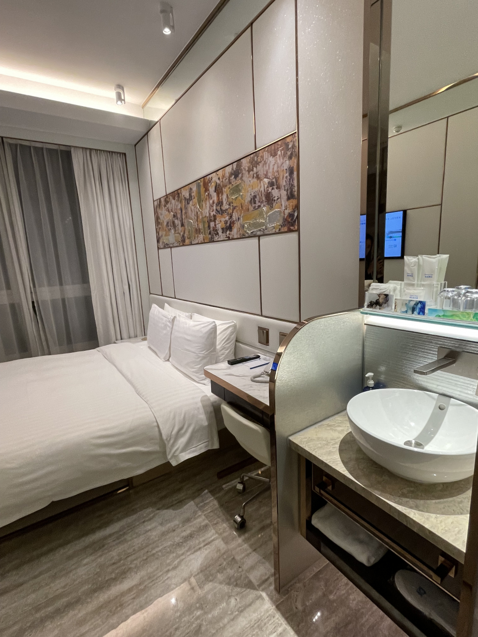 部屋は狭いけど(スーツケースを広げるのは難しいかも)、ベッドが大きく寝心地が良かった。