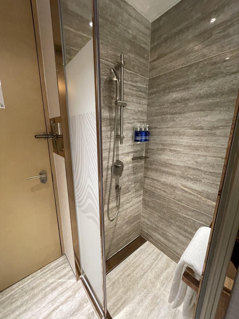 「バスルーム」というくくりのスペースはないというか、入ってすぐ左手にシャワーブース、右手にトイレ、ベッドの横に洗面台、という造りで、それぞれ小さいけど、トイレが独立しているのはむしろ良かった。クローゼット内に小さい冷蔵庫あり。