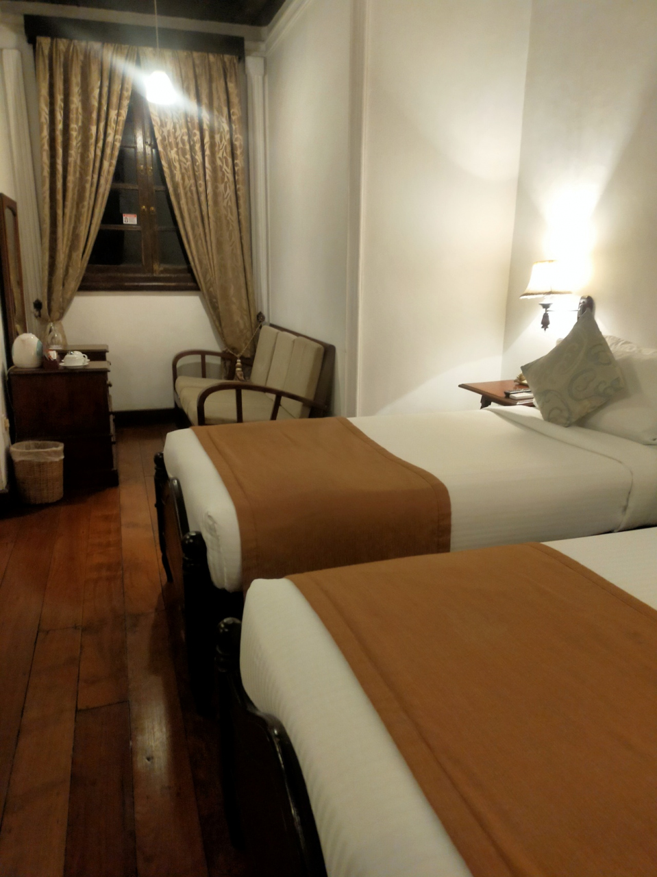 仏歯寺、キャンディ湖にも近く、エリザベス女王も泊まった伝統あるコロニアル調のホテルですが、シャワーはぬるく、湯量も弱く、設備的には・・・ただエレベーターや部屋にある家具は木製でアンティーク感があり、ホテル自体も世界遺産です。レストランは夕食時、朝食時も賑わっており、歩いて数分の所にスーパーもありました。