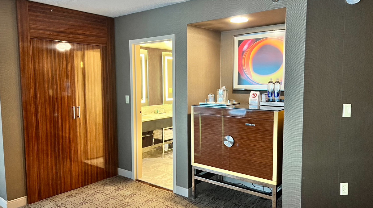 非常にきれいな部屋で、ベッドだけではなく、ソファのあるリビングスペースも広く、快適でした。お風呂もシャワーとバスがあり、双方を楽しめます。洗面台も2つあり、タオルも十分に提供され、掃除のたびにきれいにセットされます。