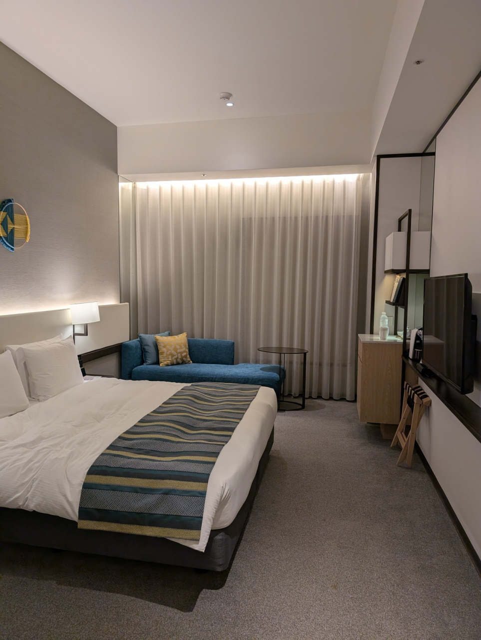 部屋は明るくて清潔、広く感じさせる工夫もあってとても快適でした。
